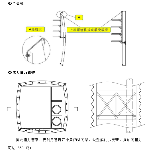 l 管架的著力點(diǎn)不設(shè)在管壁上,避免了鋼波紋板所不允許的點(diǎn)受力,同時(shí)管架可以承受重載;