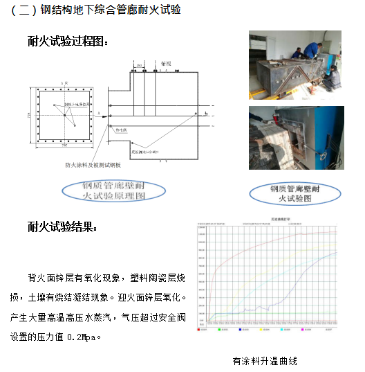 ④更為重要的是,耐火涂料只能阻止火災(zāi)時(shí)鋼結(jié)構(gòu)的溫度不高于 550℃,但對(duì)于鋼結(jié)構(gòu)地下管廊來說情況特殊,在火災(zāi)發(fā)生半小時(shí)左右,耐火涂料覆蓋的鋼結(jié)構(gòu)體溫度就超過 150℃,廊體外部土壤中的水份形成高溫高壓蒸汽,其產(chǎn)生的次生災(zāi)害有可能嚴(yán)重于火災(zāi)本身。