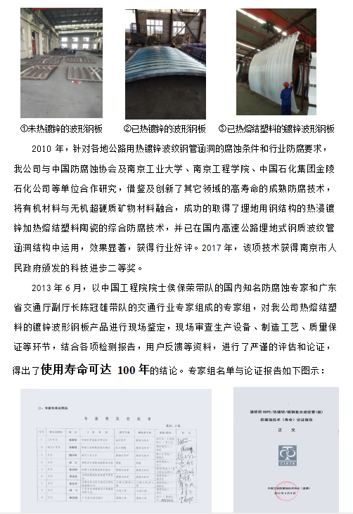 一、最早的波紋鋼綜合管廊在德國耶拿市,建于 1945 年,內(nèi)部設(shè)置有蒸汽管道、給水管道和電纜,已使用 73 年,采用熱浸鍍鋅防腐,使用狀態(tài)良好,國內(nèi)已經(jīng)有多批專家前往考察參觀。